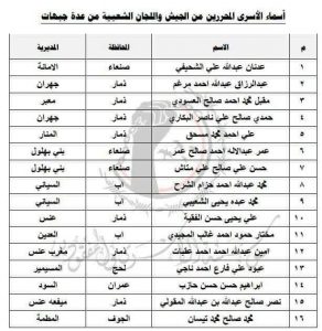 أجرت مؤسسة الأسرى والمفقودين خلال الفترة الماضية عدة عمليات تبادل مع بعض المجموعات المسلحة في عدة جبهات تم بموجبها الإفراج عن 16من اسری الجيش واللجان الشعبية وفيما يلي اسمائهم : الخميس 28/ربيع الثاني / 1438ه الموافق 26/يناير /2017م .