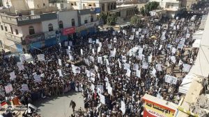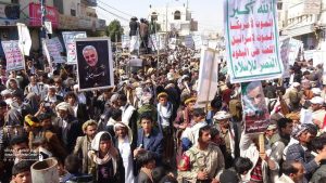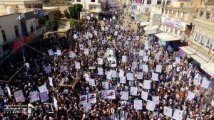 اليمنيون يشاركون في تشييع سليماني والمهندس.. مظاهرة جماهيرية حاشدة في صعدة تنديدا بجريمة الاغتيال