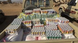 قافلة كبرى دعماً واسناداً للمرابطين في الجبهات العز والشرف وشملت القافلة على 100 مليون ريال يمني و 200 راس من الغنم و 50 راس من البقر وعدد من الابل والمواد الغذائية .