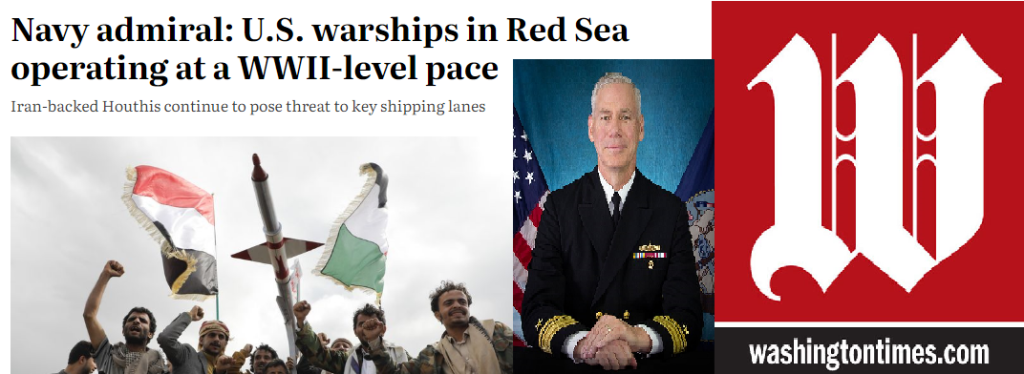 ونقلت صحيفة “واشنطن تايمز” الأمريكية في تقريرا لها تصريحات لمدير الحرب السطحية في البحرية الأمريكية الأدميرال فريد بايل : ” قواتنا منخرطة باشتباك في البحر الأحمر بطريقة لم نشهدها منذ الحرب العالمية الثانية