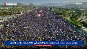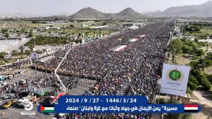 صور للحشود المليونية بميدان السبعين بالعاصمة صنعاء وساحات المحافظات اليمنية الحرة في مسيرة “يمن الإيمان في جهاد وثبات مع غزة ولبنان”