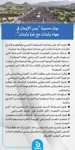 بيان مسيرة “يمن الإيمان في جهاد وثبات مع غزة ولبنان”: نحمد الله على هدايته لتصنيعنا الحربي وتوفيقهم لإنتاج تقنيات حديثة تمثلت في صناعة صواريخ فرط صوتية