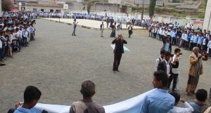وقفة طلابية في جبلة بإب للتنديد بجرائم العدوان وصفقة القرن