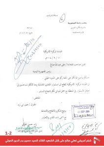 وثيقة : أمريكا تشكر علي صالح على قتله الشهيد القائد السيد حسين درالدين الحوثي On فبراير 24, 2022 وثيقة : أمريكا تشكر علي صالح على قتله الشهيد القائد السيد حسين درالدين الحوثي وثيقة : أمريكا تشكر علي صالح على قتله الشهيد القائد السيد حسين درالدين الحوثي Share