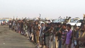 أبناء مديرية اللحية بمحافظة الحديدة ينظمون وقفة قبلية مسلحة وقافلة الوفاء للشهداء”صور”