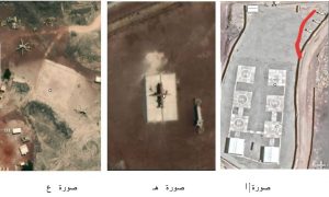 الصورة (أ) وتحوي ستة مهابط وإلى جانبها ورش الصيانة، أما العربات الجانبية المتواجدة في نفس الصورة فهي بطاريات باتريوت وحاولنا التأكد من ذلك عبر مصادر مختلفة.