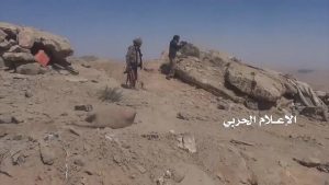 الإعلام الحربي يوزع مشاهد لجثث المرتزقة واسلحتهم التي غنمها الجيش واللجان اليوم في معركة جبل هيلان