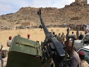 شهدت منطقة الوهبية بمديرية السوادية بمحافظة البيضاء عرضا عسكريا لبعض الوحدات القتالية التابعة لكتائب الوهبي تلته وقفة قبلية مسلحة لأبناء ومشائخ ووجهاء المنطقة تأكيدا على الاستعداد التام والتأهب لمواجهة أي تصعيد من قبل العدوان ومرتزقته بتصعيد.