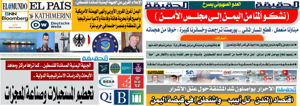 الجبهة اليمنية المساندة لفلسطين في «الحقيقة»: مانشيتات وعناوين الصفحات الأولى من الــ 15 من أكتوبر 2023م وحتى 13 من يناير 2025م