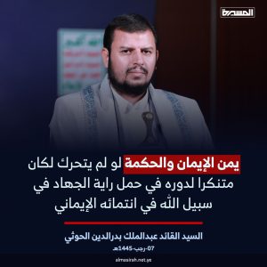 يمن الإيمان والحكمة لو لم يتحرك لكان متنكرا لدوره في حمل راية الجهاد في سبيل الله في انتمائه الإيماني
