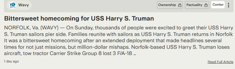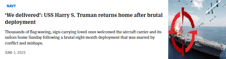 • عودة حلوة ومرة لحاملة الطائرات هاري ترومان ليس فقط بسبب المهام ولكن بسبب الحوادث التي بلغت تكلفتها ملايين الدولارات