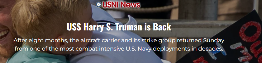 ♦ حاملة الطائرات يو إس إس هاري إس. ترومان تعود إلى الوطن بعد انتشار قتالي قاسٍ