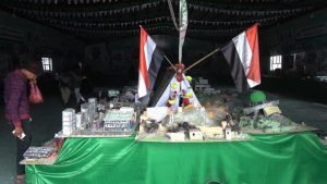 في حين نظم مكتب التربية والوحدة التربوية بمحافظة إب، معرض فني لطلاب المدارس عن جرائم العدوان وانتصارات الجيش واللجان الشعبية.