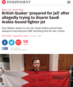وكان والتون برفقة ناشط آخر هو القس دانيال ويدهوس اقتحموا الأسبوع الماضي مقر شركة BAE البريطانية المصنعة للأسلحة في مقاطعة لانكشاير بهدف نزع أسلحة من طائرات بريطانية متوجّهة نحو السعودية.