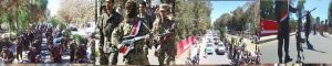 عروضا عسكريا تدشن بين الحين والاخر تارة في الحديده وتارة في صنعاء وتارة في عمران وتارة في ذمار وتارة في الجوف وتارة تلو تاره في كل محافظة ومديريه وماهذه العروض العسكريه الا دلاله جهوزيه عاليه ومجهود حربي لاينضب وعزم وطني على تطهير البلاد وتحرير العباد ورفع راية الاستقلال والحرية والنصر في كل شبر من هذه الارض المباركه وللحديث بقيه..