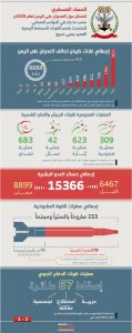 وقال المتحدث الرسمي للقوات المسلحة أن اجمالي ما رصدته الجهات المختصة من خسائر بشرية للعدو بلغت أكثر من 15366 ما بين قتيل ومصاب، منهم 6467 قتيل، وأكثر من 8899 مصاب، فضلا عن تكبد العدو خسائر في العتاد.