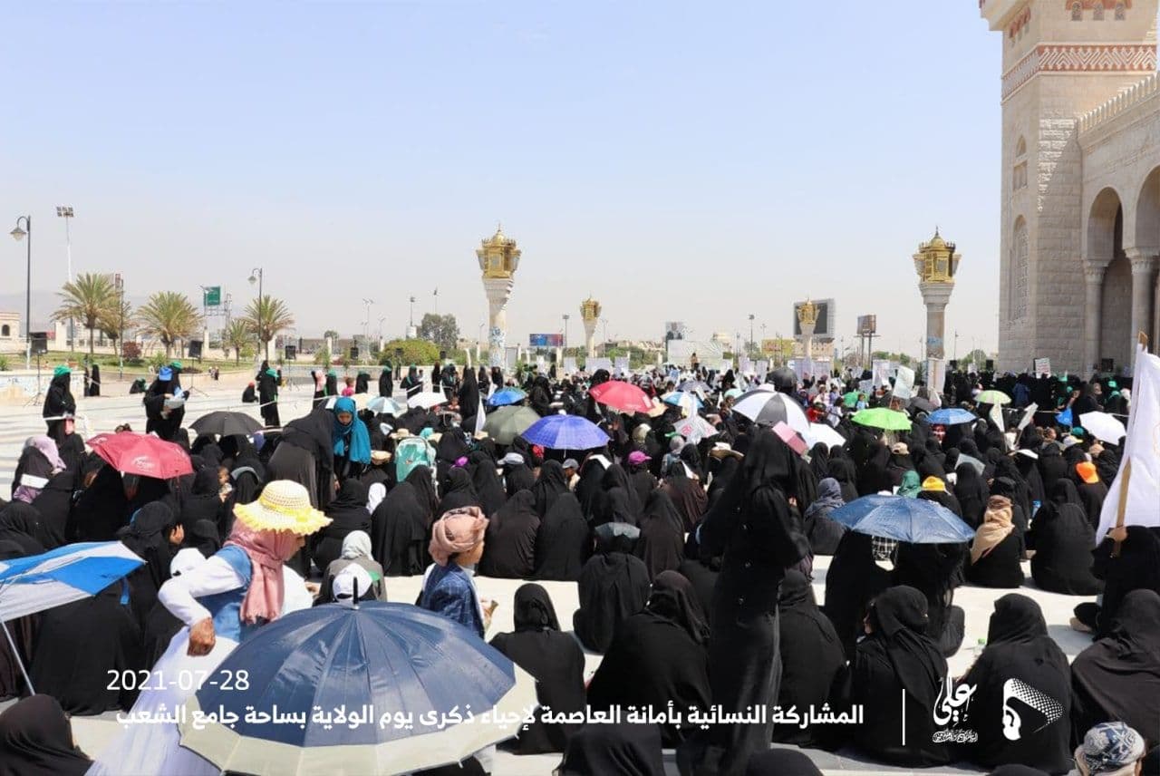 أحيت حرائر أمانة العاصمة صنعاء، في ساحتي ملعب الثورة وجامع الشعب ذكرى يوم ولاية الإمام علي عليه السلام.