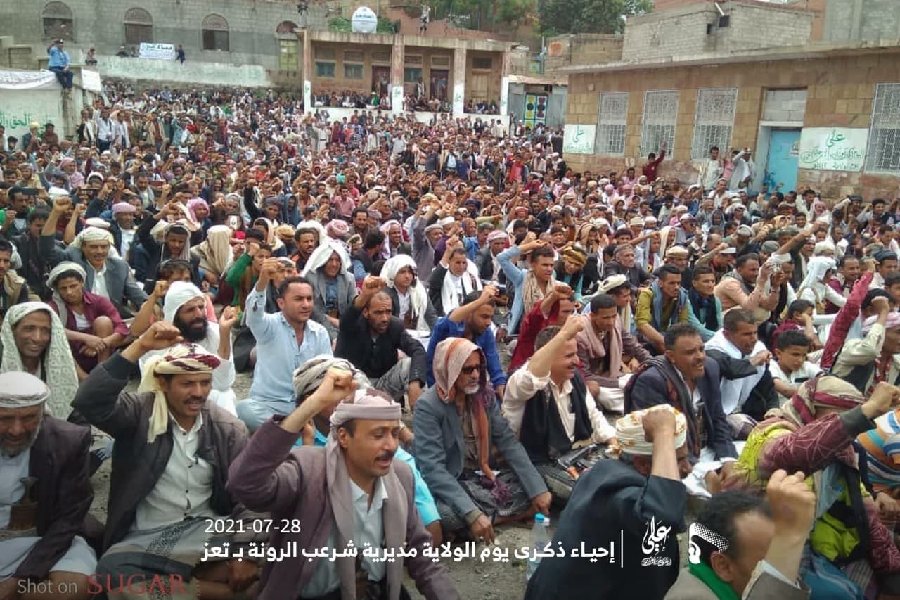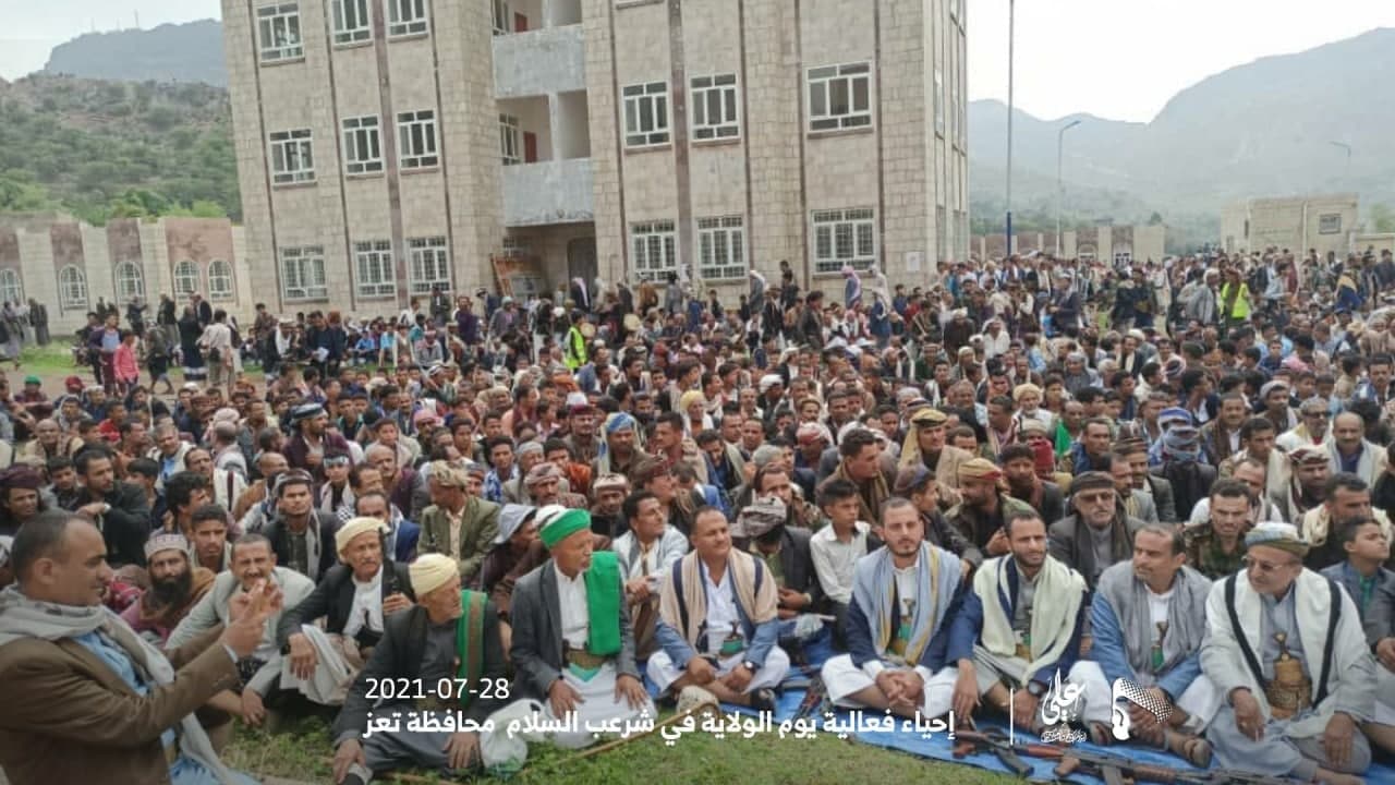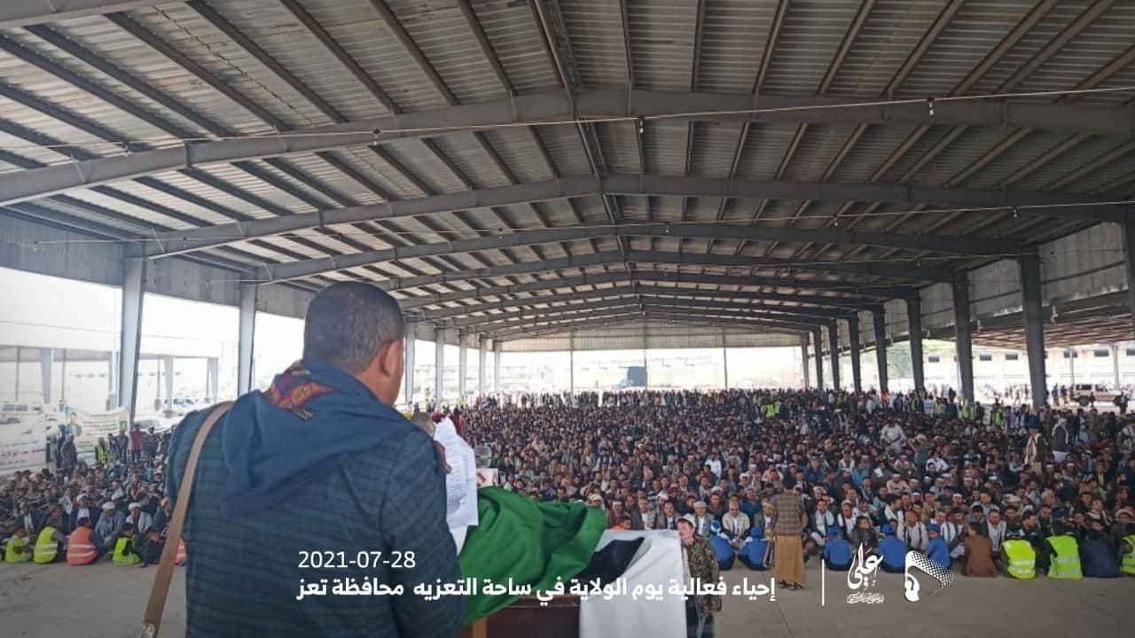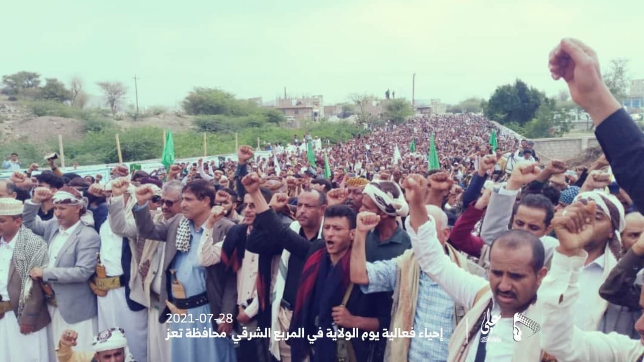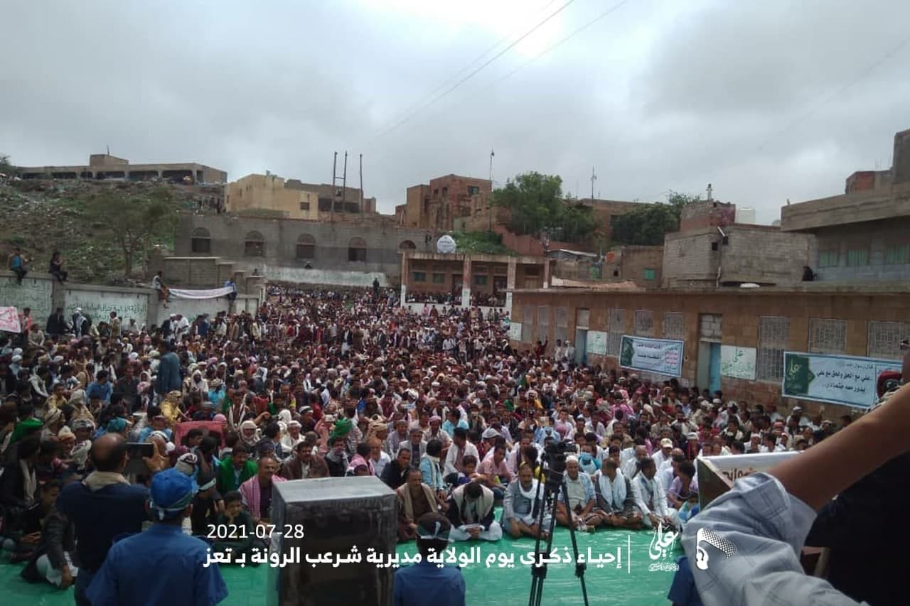 إلى ذلك احتشد أبناء مديريات خدير والصلو وسامع وحيفان وصبر الموادم لإحياء ذكرى يوم الولاية.