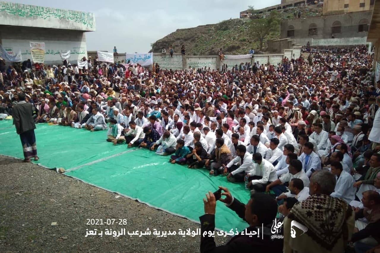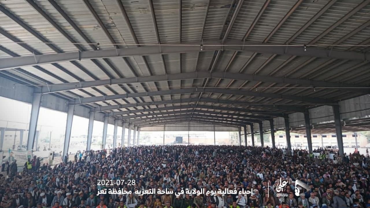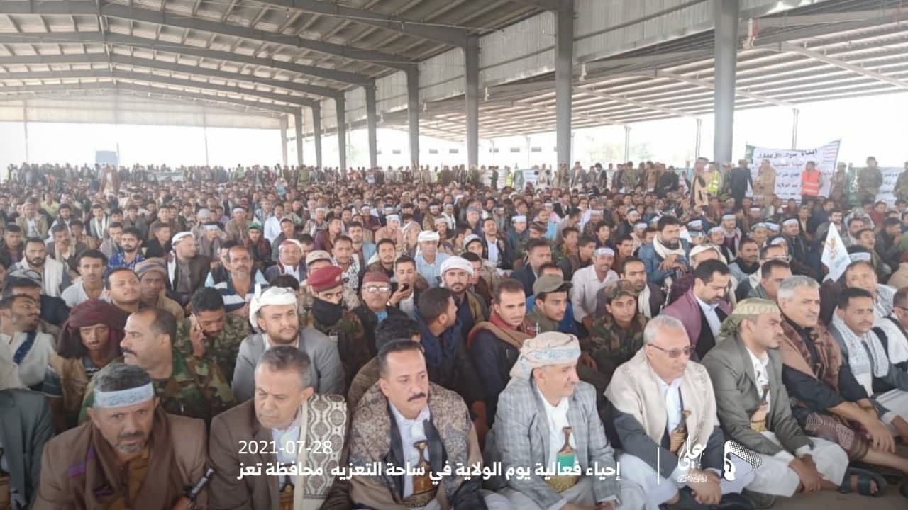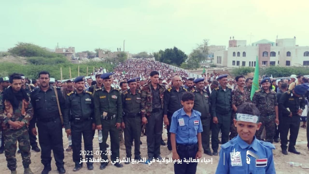 إلى ذلك احتشد أبناء مديريات خدير والصلو وسامع وحيفان وصبر الموادم لإحياء ذكرى يوم الولاية.
