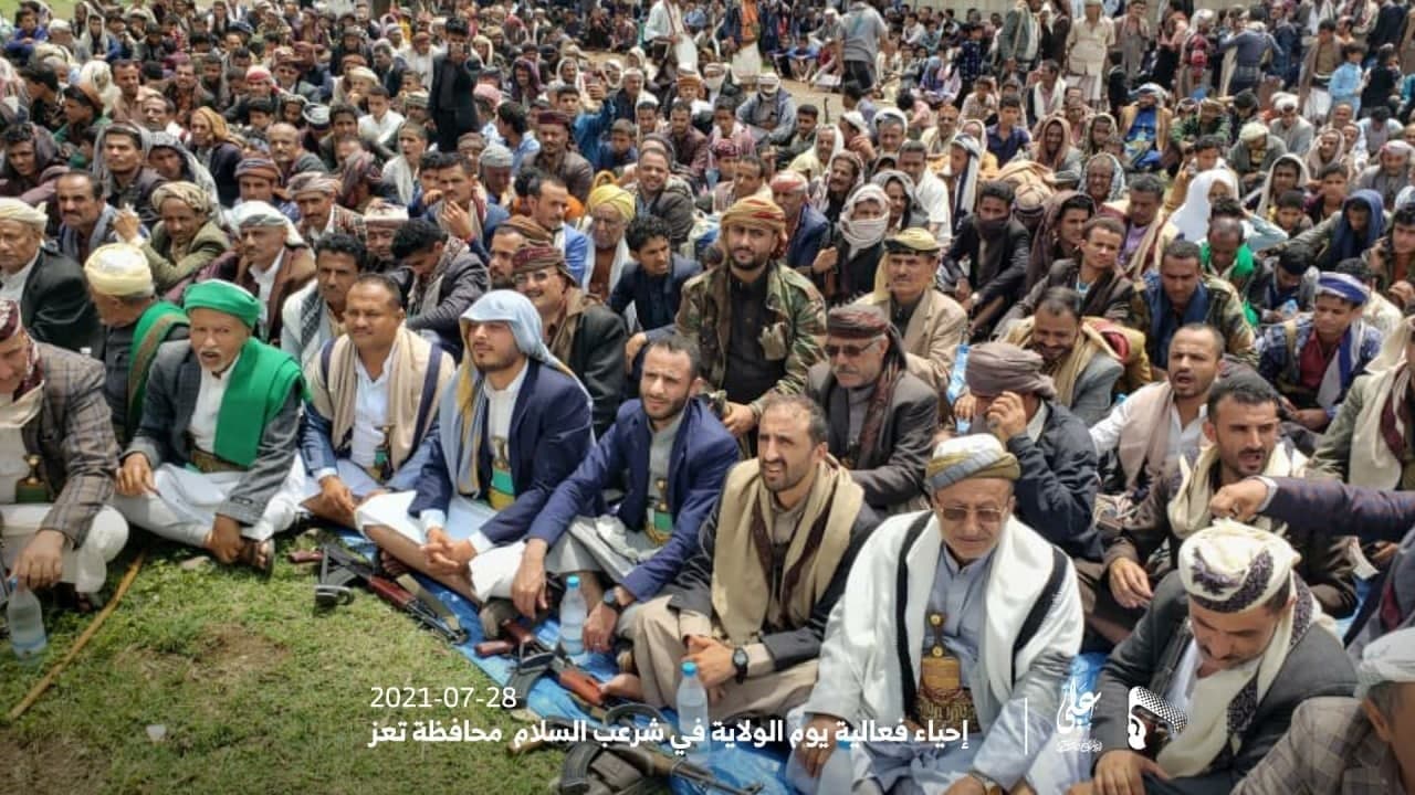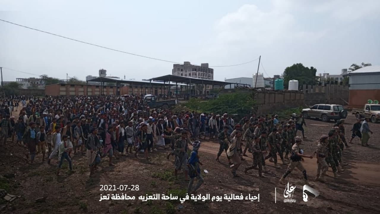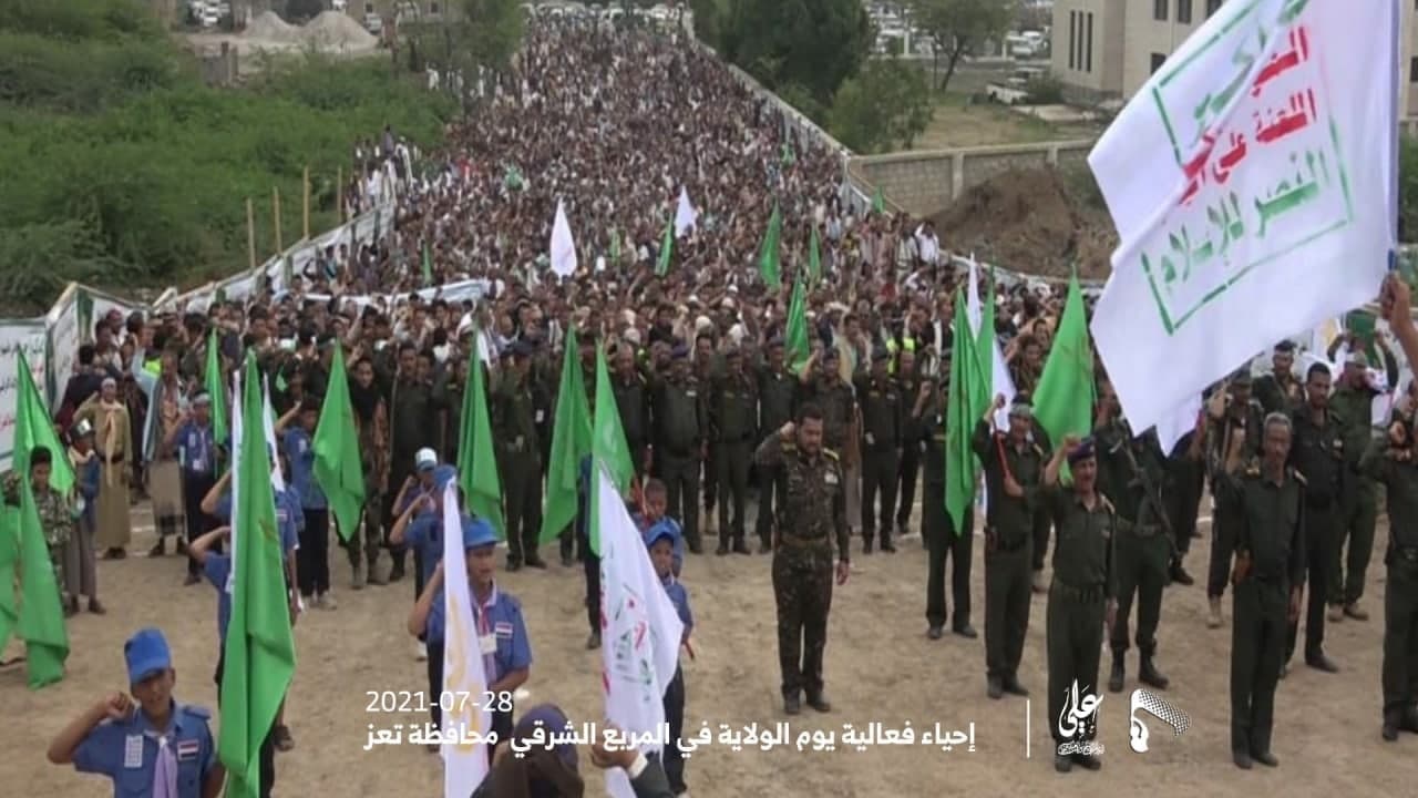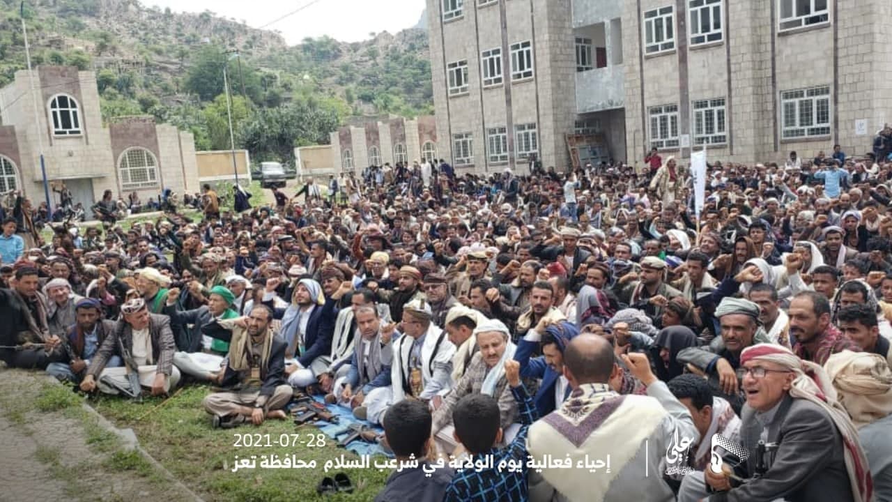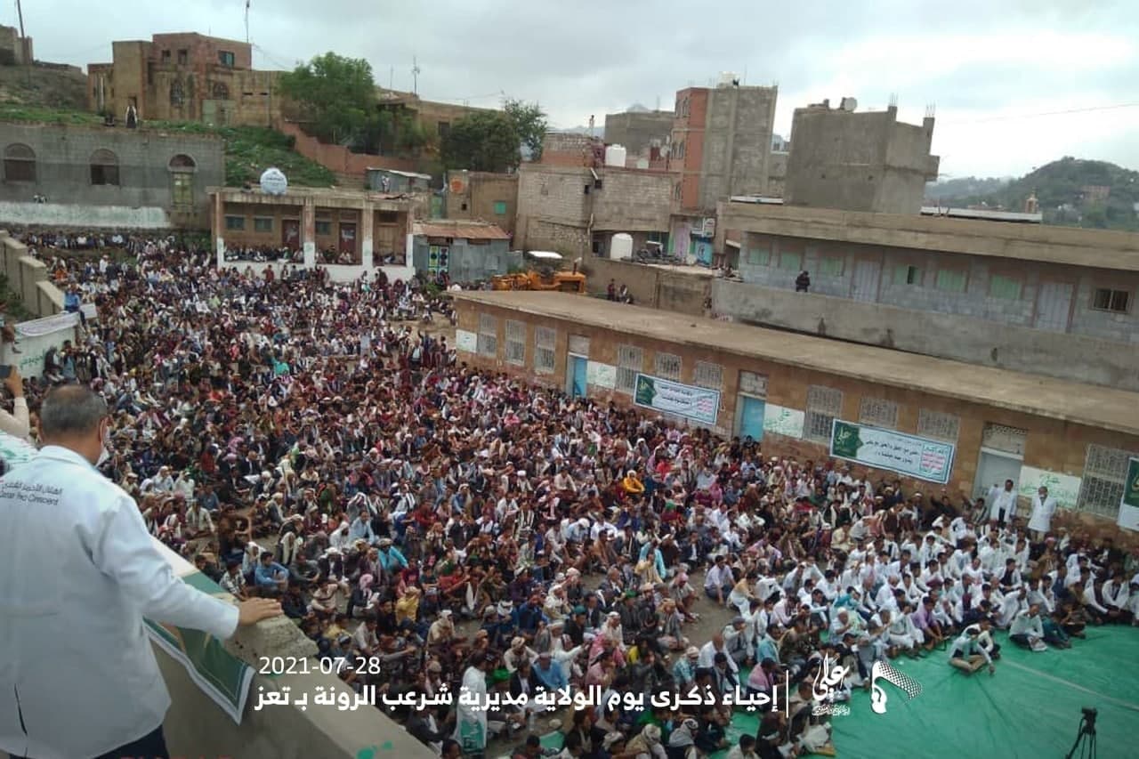 إلى ذلك احتشد أبناء مديريات خدير والصلو وسامع وحيفان وصبر الموادم لإحياء ذكرى يوم الولاية.