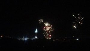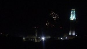 وأشتعلت سماء المدينة بالألعاب النارية الذي جعلھا أشبه بمدينة تتلألأ وكأنھا مدينة للنجوم الملونة تبعث للناظر بھجة الشعور، وتدخل قلب كل محب لأمير المؤمنين علي عليه السلام .