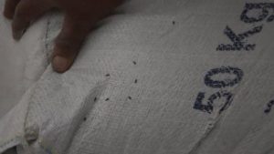 وفيما يلي صور توضح الحشرات الصغيرة التي وجدت في البقوليات بمركز مدرسة المعتصم ومدرسة الشامي والتي كان برنامج الغذاء العالمي في طور توزيعها مطلع الأسبوع الحالي: