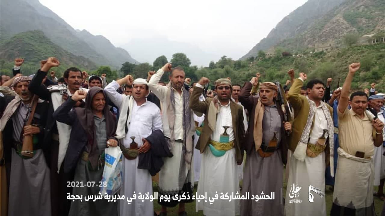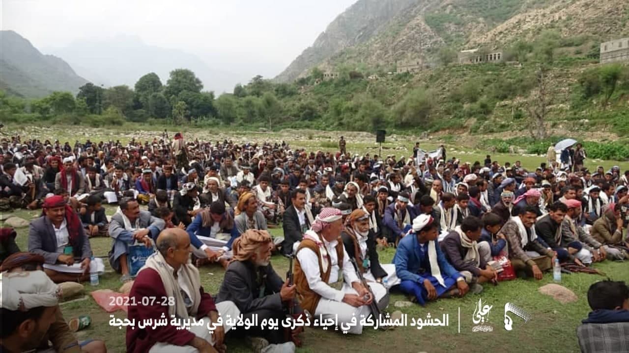 كمااحتفت مديريات قفل شمر وكحلان الشرف والشغادرة والمفتاح وبني العوام في حجة اليوم الأربعاء ، بذكرى يوم الولاية بخمس فعاليات خطابية منفصلة.