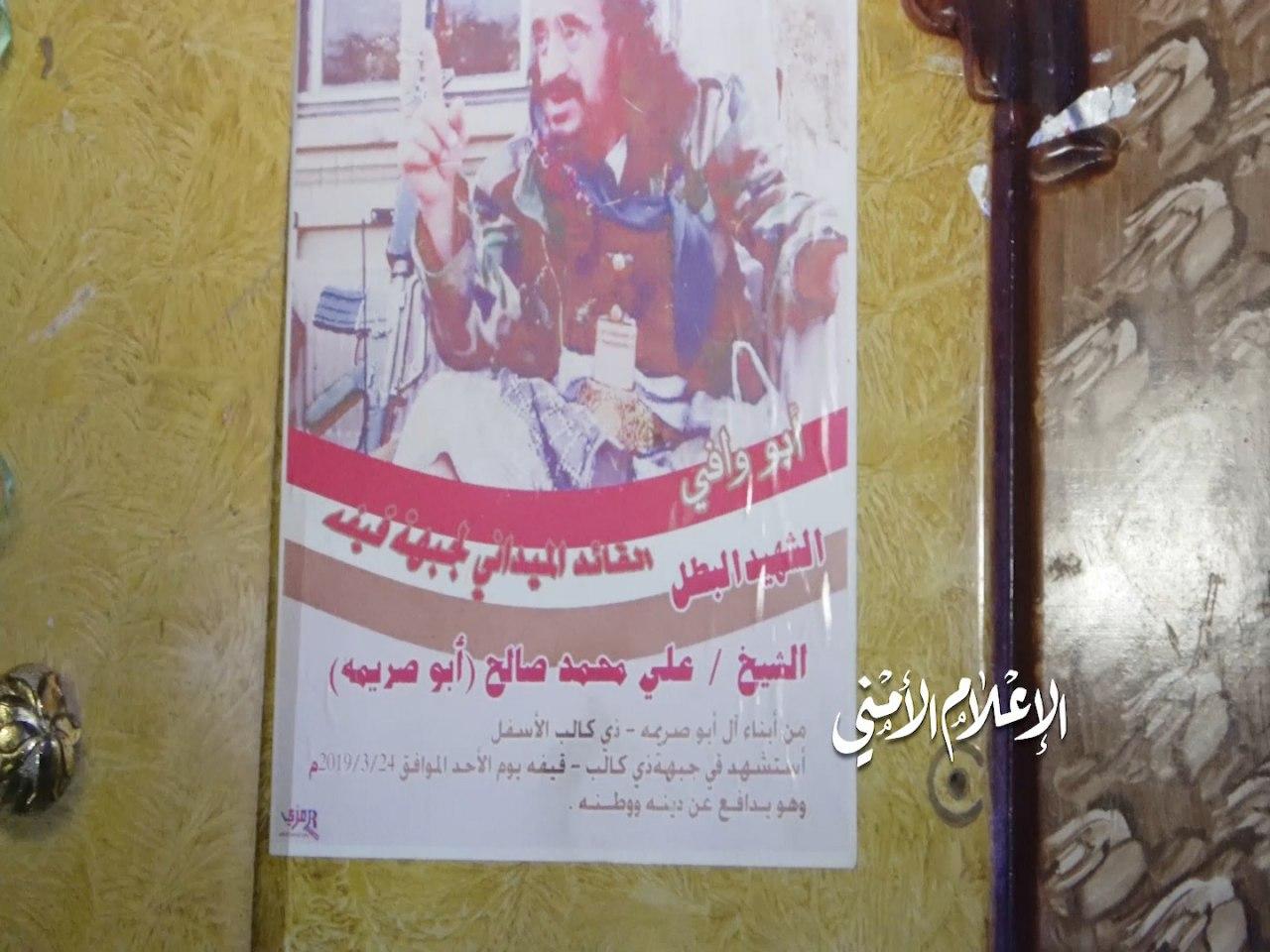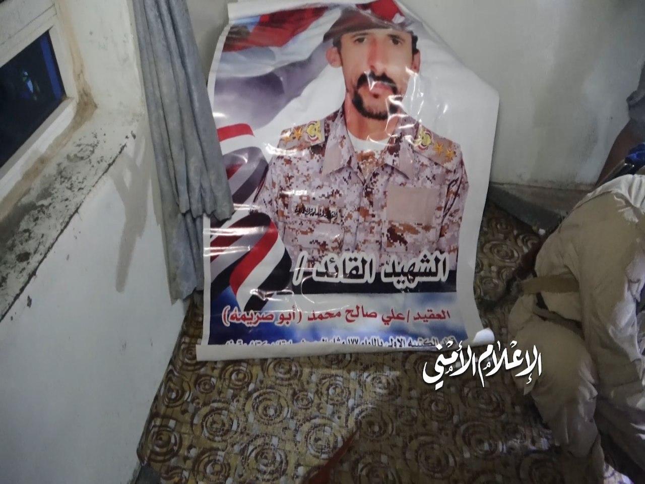 الصورة السادسة لقتيل علي محمد صالح أبو صريمه قائد جبهة قيفه كما هو موضح من الصورة التي عادة تطبعها قوات الشرعية للقياديين من قتلاها.