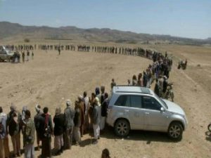 قفاتنظمت قبائل بني حشيش وبلاد الروس بمحافظة صنعاء صباح اليوم الأربعاء 4-أبريل-2018 وقفات جماهيرية مسلحه تصعيديه و حاشدة يتقدمهم المشائخ والوجهاء والشخصيات الاجتماعية وأمنية ومدراء المديريات ، تنديدا بجريمة الاغتصاب البشعة التي اُرتكبت بحق بنت الخوخة من قبل احد جنود الجنجويد السوداني المرتزقة التابعة لتحالف العدوان والغزاة المحتلين الذين يستبيحون الأرض والعرض