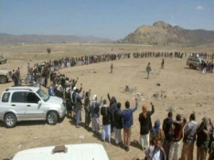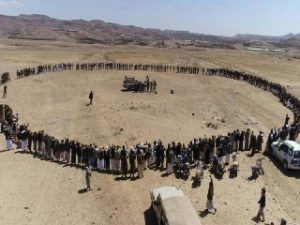بالصور وقفة احتجاجية لأبناء مديريتي بلاد الروس وبني حشيش تنديدا بجريمة اغتصاب بنت الخوخة