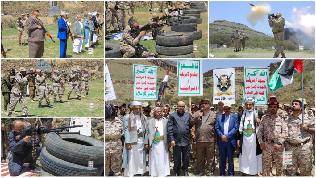 وتابع: “اليوم يومٌ واعدٌ، الجميع يتدرب ويضرب بكل أنواع الأسلحة؛ ليعرف العدوّ أننا شعب واحد، ولا يوجد مسؤول يجلس على مكتبه؛ فالكل سينطلق إلى المعركة نقاتل أعداء الله، وَإذَا أرادت أمريكا أن يأتي جنودها أَو وكلاؤها فنحن نرحب بهم على رؤوس البنادق والمدافع والقذائف في الميدان”.