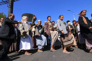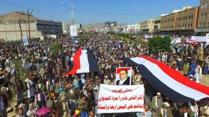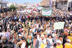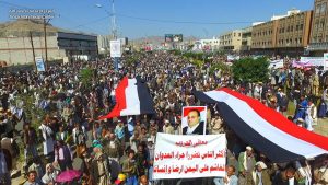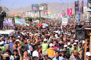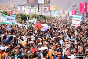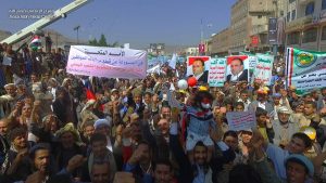 شهد شارع الستين الجنوبي أمام مكتب الأمم المتحدة بالعاصمة صنعاء، صباح اليوم الاثنين، مسيرة جماهيرية كبرى دعا إليها المجلس السياسي الأعلى للتنديد بتصعيد العدوان السعودي الأمريكي لحصاره على اليمن وإغلاق كافة المنافذ للجمهورية اليمنية.