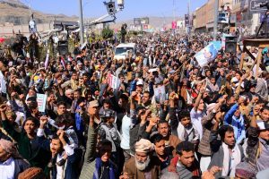 وبدأت المسيرة التي امتدت بطول شارع الستين وحمل المشاركون فيها أعلام الجمهورية اليمنية واللافتات المنددة بتصعيد العدوان وجرائمه بحق العدوان الشعب اليمني وإغلاق المنافذ البرية والبحرية والجوية لليمن.