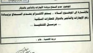 وأصدرت أمانة العاصمة تعميما إلى السلطات المحلية في المديريات ومشائخها وعقال أحياء الأمانة والحارات قضت “بعدم السماح لملاك العقارات السكنية برفع الإيجارات في هذه الفترة، ومنع تأجير العقارات بالدولار والالتزام بالعملة الوطنية”.
