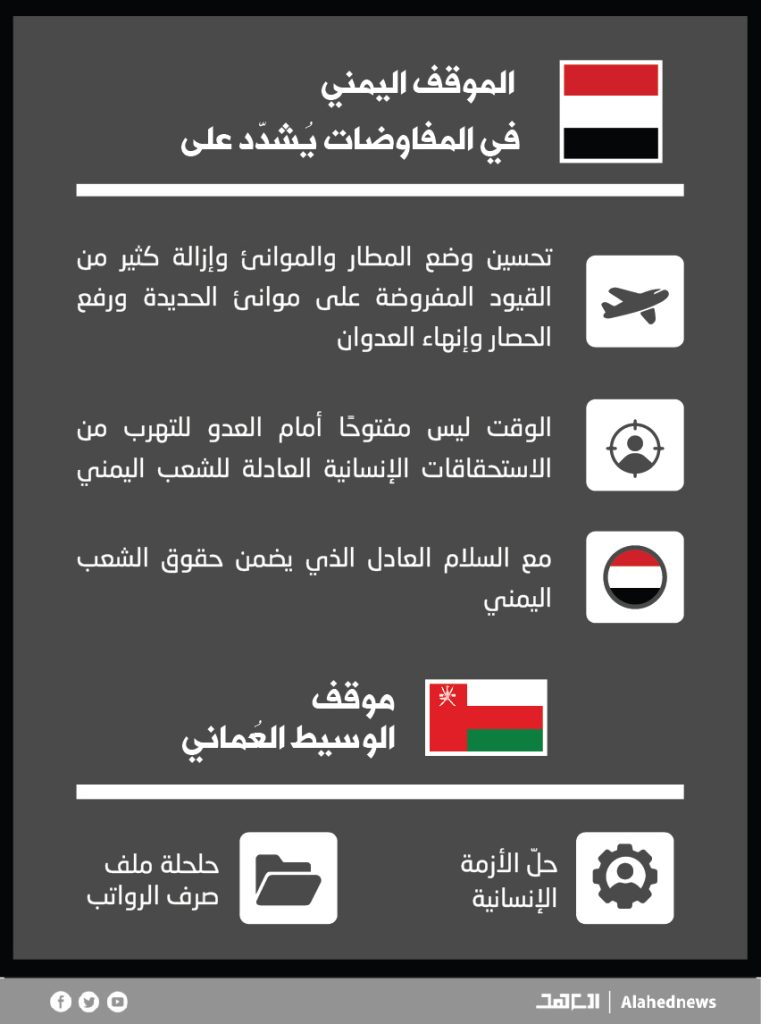 جرافيك :لماذا نشطت المفاوضات بعد خطاب “اللاءات العشرة ” او الفرصة الأخيرة لقائد الثورة ؟ وماذا حصل بعد الخطاب؟ وما هو الموقف اليمني وموقف الوسيط العُماني ؟ وماهي المؤشرات التي يٌبنى عليها ؟