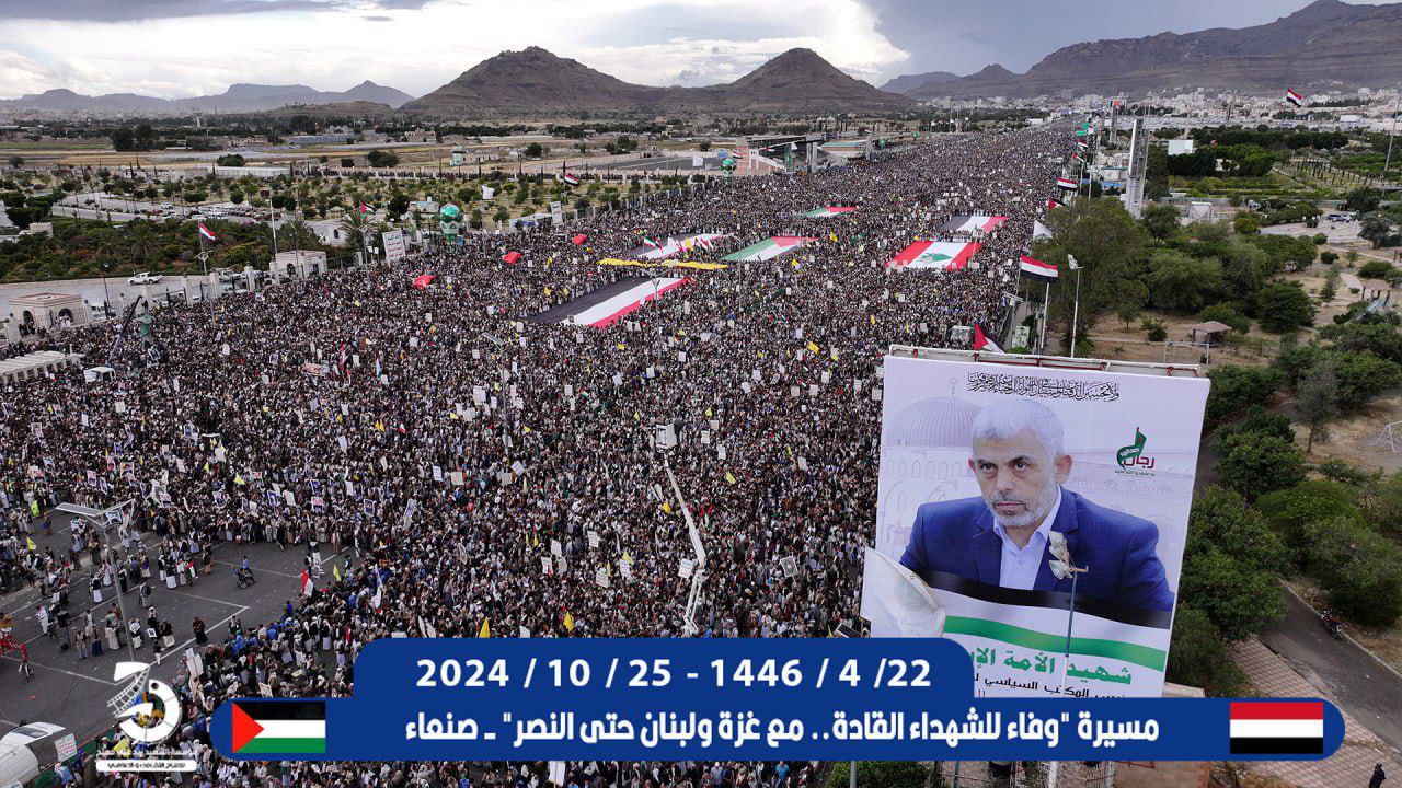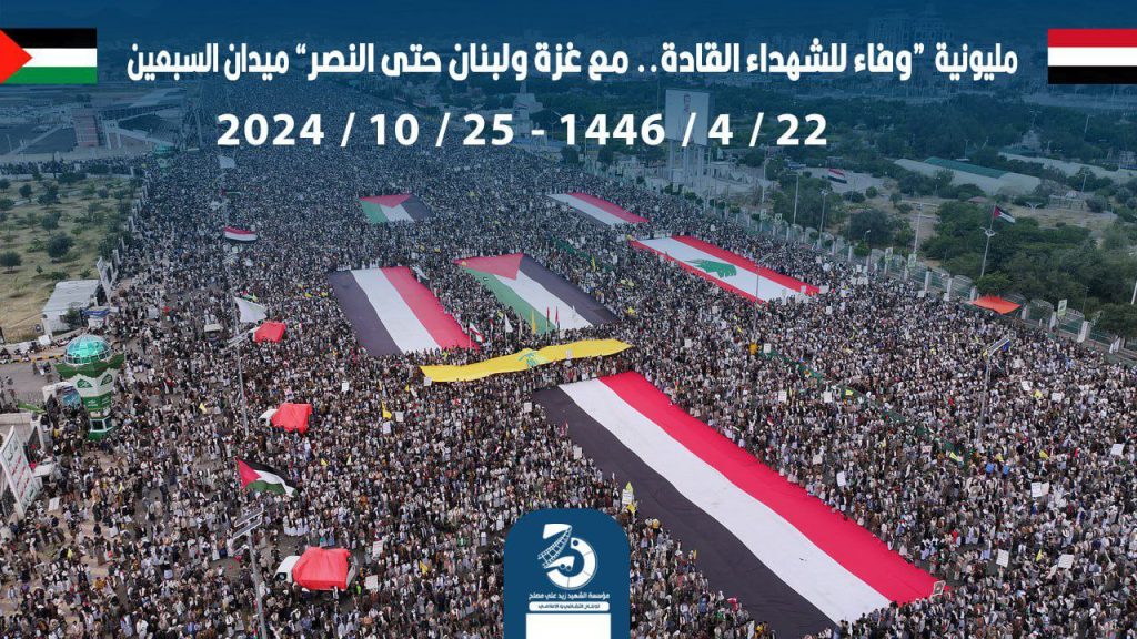 وأكد البيان أنه وأمام استمرار كل هذا الإجرام والوحشية، يستمر الشعب اليمني في خروجه المليوني الأسبوعي انطلاقاً من هويته الإيمانية، وجهاداً في سبيل الله وابتغاءً لمرضاته، ووفاءً للشهداء القادة ودعماً ومساندةً للشعبين الفلسطيني واللبناني حتى النصر بإذن الله.