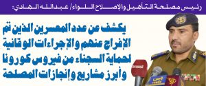 وأمام ما يشهده العالم من تفشي جائحة وباء كورونا عملت المصلحة منذ وقت مبكر على اتخاذ حزمة من الإجراءات الاحترازية الوقائية لحماية النزلاء قبل ظهور أي حالات في اليمن حرصا على سلامة النزلاء والعاملين، بالإضافة إلى تفاصيل مثيرة تعرفونها في سياق هذا اللقاء: