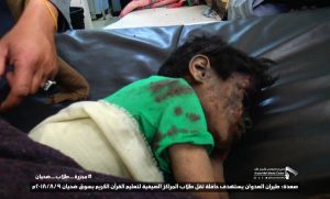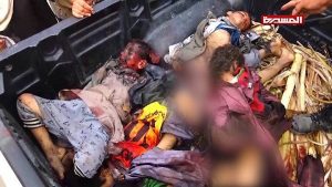 شاهد بالصور.. المجزرة التي ارتكبها طيران العدوان الغاشم لحافلة طلاب أطفال في سوق ضحيان