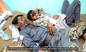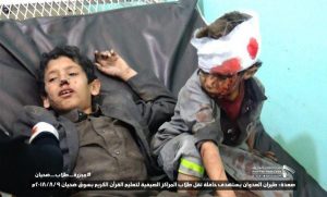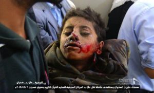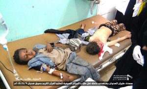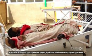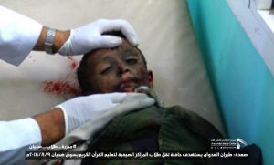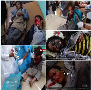صعدة: صور من المجزرة التي ارتكبها طيران العدوان الأمريكي السعودي الغاشم اليوم التي استهدفت حافلة طلاب أطفال في سوق مدينة ضحيان بمديرية مجز.. وقد بلغت حصيلة 53 شهيداً و77 جريحاً.
