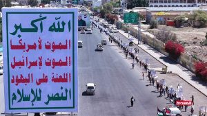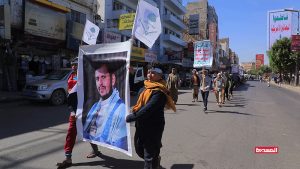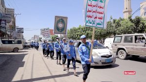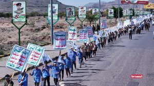وشارك في المسير آلاف الطلاب والشباب، وساروا بخطوط طويلة وجابوا عددا من الشوارع بمختلف مديريات العاصمة صنعاء، رافعين شعارات الصرخة في وجه المستكبرين، واللافتات المعبرة عن تضامنهم ومساندتهم للشعب الفلسطيني، مرددين الشعارات والهتافات المنددة بجرائم كيان العدو الصهيوني بحق أبناء غزة.