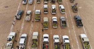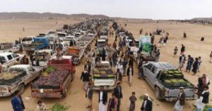 قبائل بني حشيش تسير أكثر من 150 سياره محملة باصناف مختلفة من العنب و مبالغ ماليه أكثر من ثلاثه ملايين ريال دعما لأبطال الجيش واللجان الشعبية المرابطين في جبهات العزه والكرامه