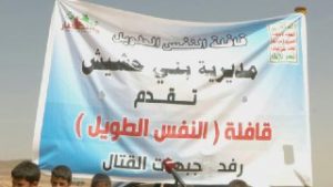 مشائخ ووجهاء وأبناء قبيلة ا دعت أثناء تسيير القافله كل الاحرار والشرفاء من أبناء الوطن الی رفد كل الجبهات والاستمرار في ذلك حتی إفشال مخططات قوی الشر والطغيان المتمثل بأمريكا وإسرائيل وعملائهم من الخونة و المنافقين والمرتزقه و كل شذاذ الآفاق ..
