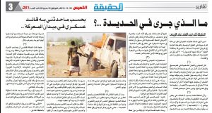 صحيفة الحقيقة العدد “281”:ما الذي جرى في الحديدة ..؟ بحسب ماحدثني به قائد عسكري في ميدان المعركة ..