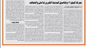 صحيفة الحقيقة العدد “281”:معركة كيلو 16 وتفاصيل المذبحة الكبرى لداعش والتحالف