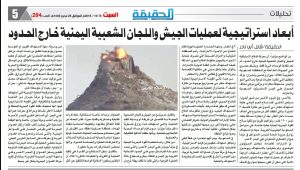 صحيفة الحقيقة العدد “284”:تحليلات:أبعاد استراتيجية لعمليات الجيش واللجان الشعبية اليمنية خارج الحدود