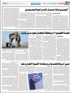 صحيفة الحقيقة العدد “289” :تقارير :أقرأ عن :لعنة الكيلو ١٦ ومنطقة المطار تعود من جديد اليمن وتبني أمريكا للعدوان ومعادلة القوة الصاروخية وبداية مسار التراجع السعودي