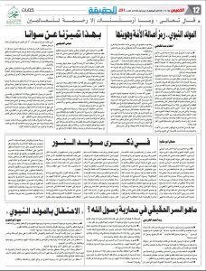 - نحتفل بميلاد أمة ورسالة اصطفى بها سيد الخلق وخاتم الأنبياء والمرسلين لإصلاح البشرية لما فيها عزة الأمه في الدنيا والآخرة وتشريف إلهي لأمه تأمر بالمعروف وتنهى عن المنكر وتعمر الأرض بعدما كانت غارقة في ظلام الجاهلية.