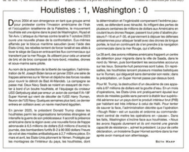 صحيفة “لوموند ديبلوماتيك” الفرنسية تقيم نتيجة المعركة بين الطرفين .. صنعاء: 1 .. واشنطن: 0