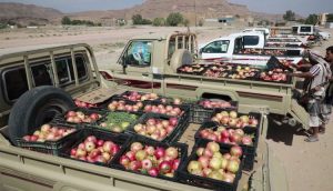 صعدة: أبناء مديرية مجز يرفدون الجبهات بقافلة من ” الرمان”