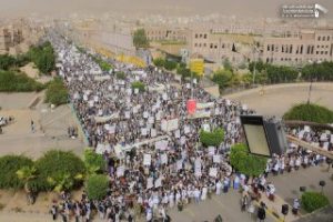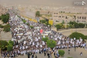#صنعاء: صور من الحشود الجماهيرية الكبيرة التي خرجت عصر اليوم في مسيرة الذكرى السنوية للصرخة في وجه المستكبرين في باب اليمن . On يوليو 13, 2018 #الذكرى_السنوية_للصرخة الذكرى السنوية للصرخةالسيد الحوثياليمنصنعاء Share